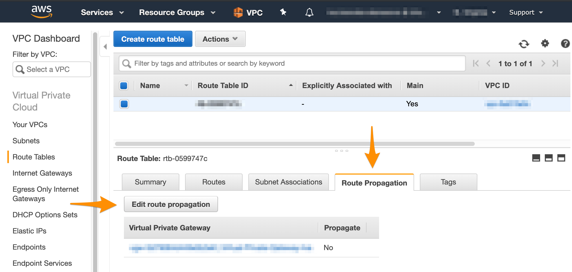 All checks in this section are performed in the AWS Management Console.Verify that your virtual private gateway is attached to the VPC.