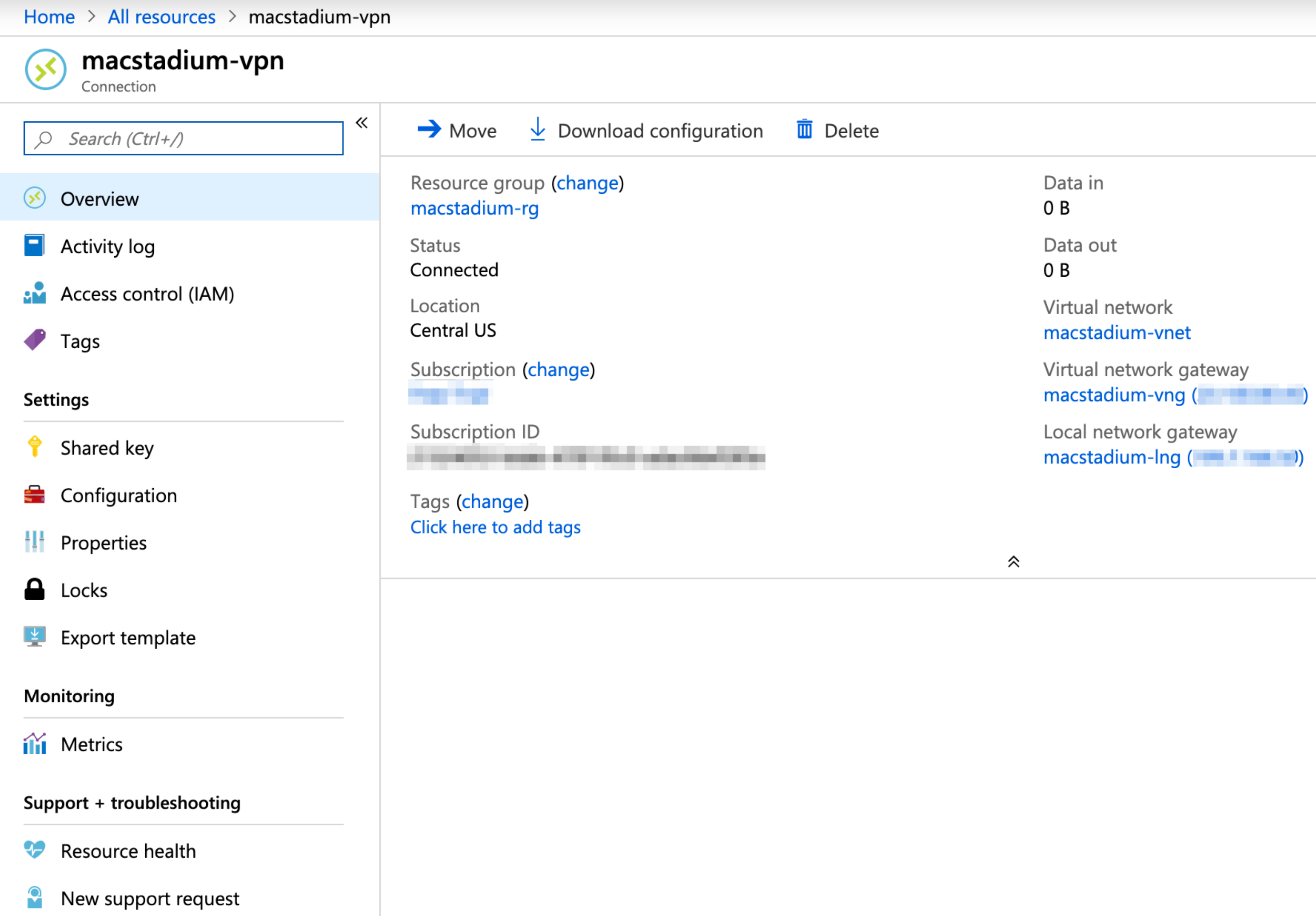 - On the All resources page, find the connection that represents your VPN connection (for example: macstadium-vpn) and click it.
