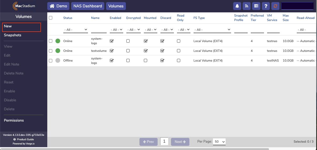 - Select Volumes from the left menu.