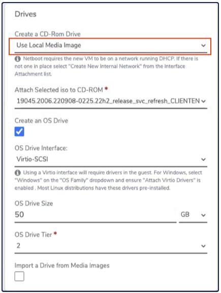 Attach Virtio Drives = checked