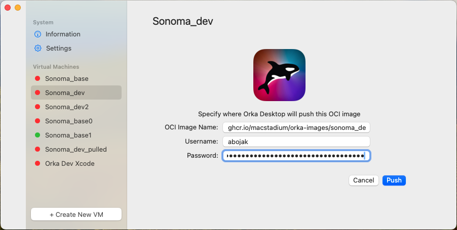 Orka Desktop is a free, no obligation, virtualization tool, which is designed to be deployed on individual macOS workstations. These workstations might be a local Macbook, a hosted Mac mini or Studio by MacStadium, AWS, or even an individual On-Prem solution. Once deployed, Orka Desktop allows users to create a seamless workflow for running the same image on any device. An image can be built and tested locally, then uploaded to the cloud. This is much easier than needing bespoke technologies, and individual processes to test, share, and configure virtualized images. Orka Desktop integrates with other cloud based, licensed MacStadium products, like Orka. For example, an image built and tested with Orka Desktop can be uploaded to a Container Repository that is shared with an Orka cloud instance, using this integrated tool. The ability to publish local images to the Orka cloud means users can develop locally and deploy globally - offering flexibility, scalability, and an on-ramp to use MacStadium products more effectively.ποΈ NOTE Users can publish any image to a container registry, for example, GitHub Packages or DockerHub and then pull it into the Orka Cluster.