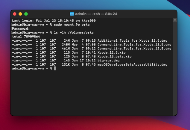 - Make sure that /Volumes/orka is already mounted on the VM.