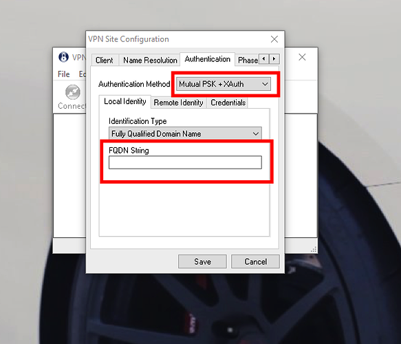 - Go to the Authentication tab. From the Authentication Method drop-down menu select Mutual PSK + XAuth.